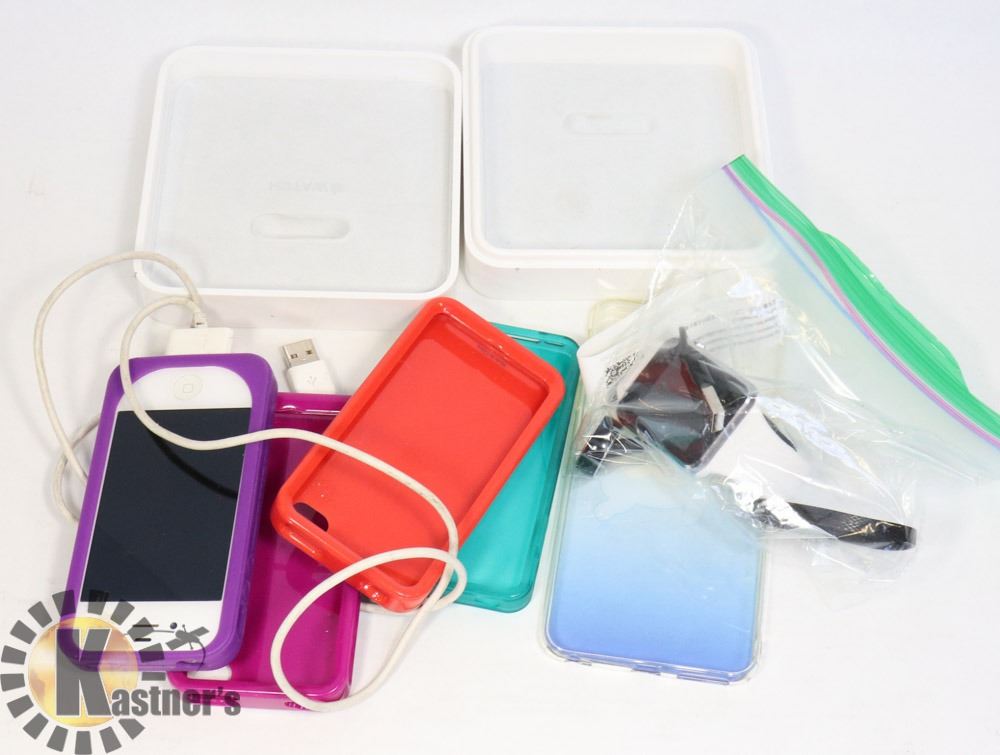NEW JAKCOM BLACK SMART RING SIZE 9 / BLACK AND BROKEN IPHONE 4 WITH 4 COVERS AND ONE EMPTY APPLE