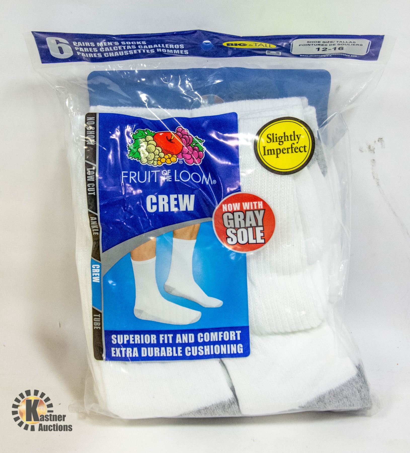 WHITE CREW SOCKS 12-16 SIZE 6-PACK FRUIT OF LOOM