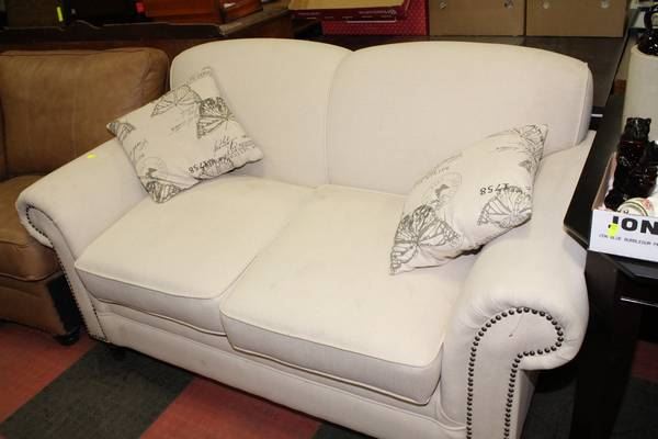 WHITE FABRIC NAIL HEAD LOVE SEAT