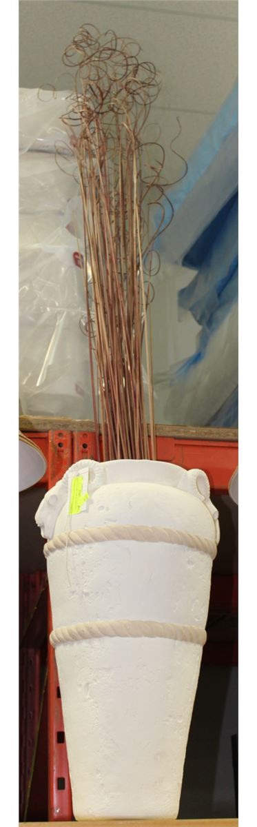 WHITE FLOOR VASE & CONTENTS