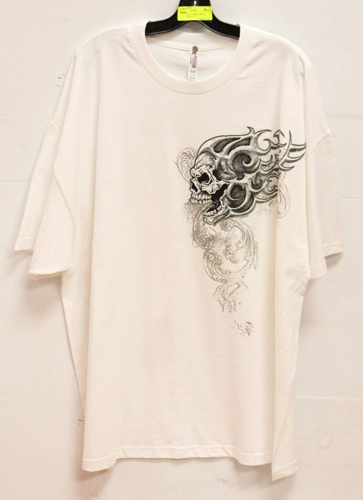 WHITE MENS "FLAMING SKULL" TSHIRT - SIZE 3XL
