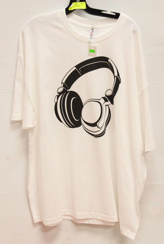 WHITE MENS "HEADPHONES" TSHIRT - SIZE 3XL