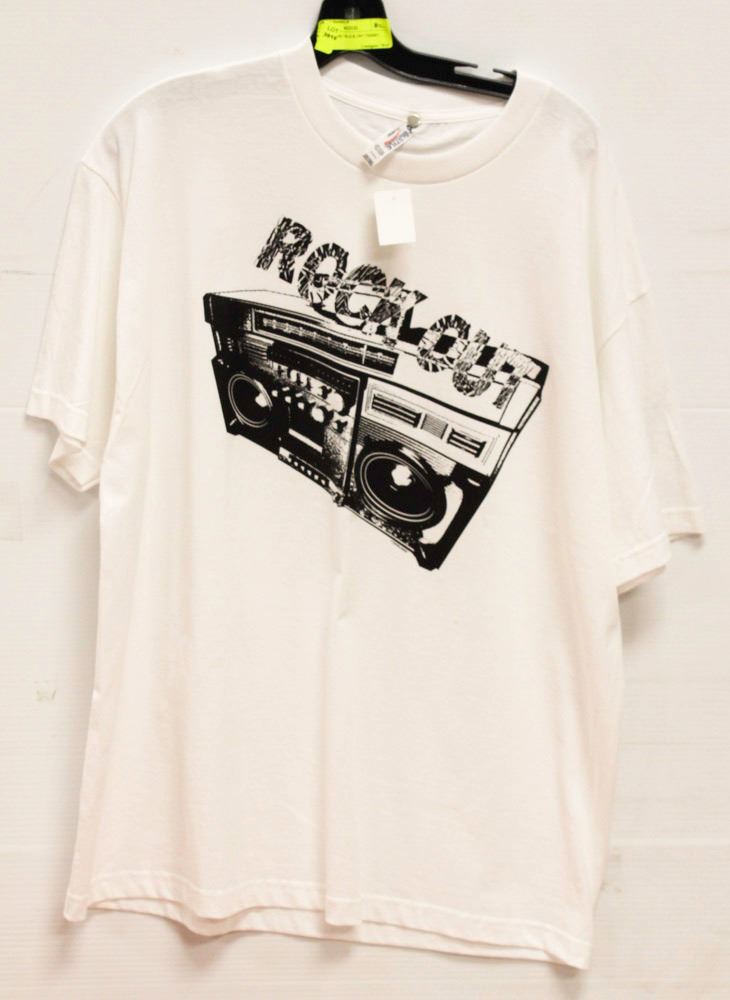 WHITE MENS "ROCK ON" TSHIRT - SIZE SMALL