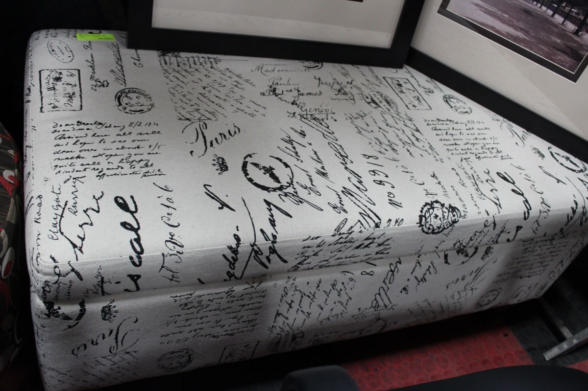 WHITE PRINT DESIGN OTTOMAN