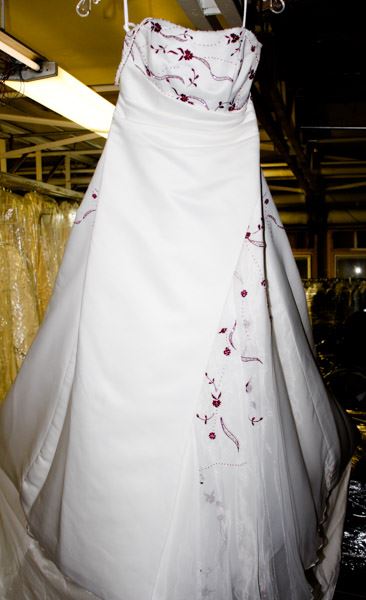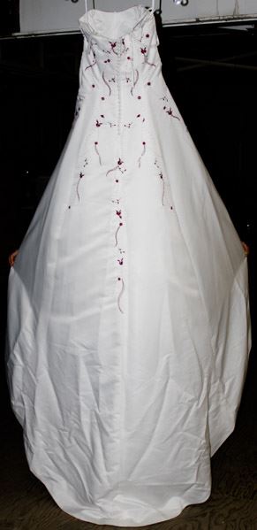 WHITE & RED FLORAL WEDDING DRESS SIZE: UNKNOWN