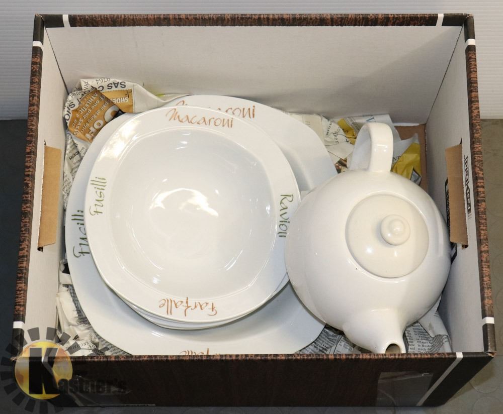 WHITE SERVINGS SETS, BOWLS AND VARIOUS TRAYS