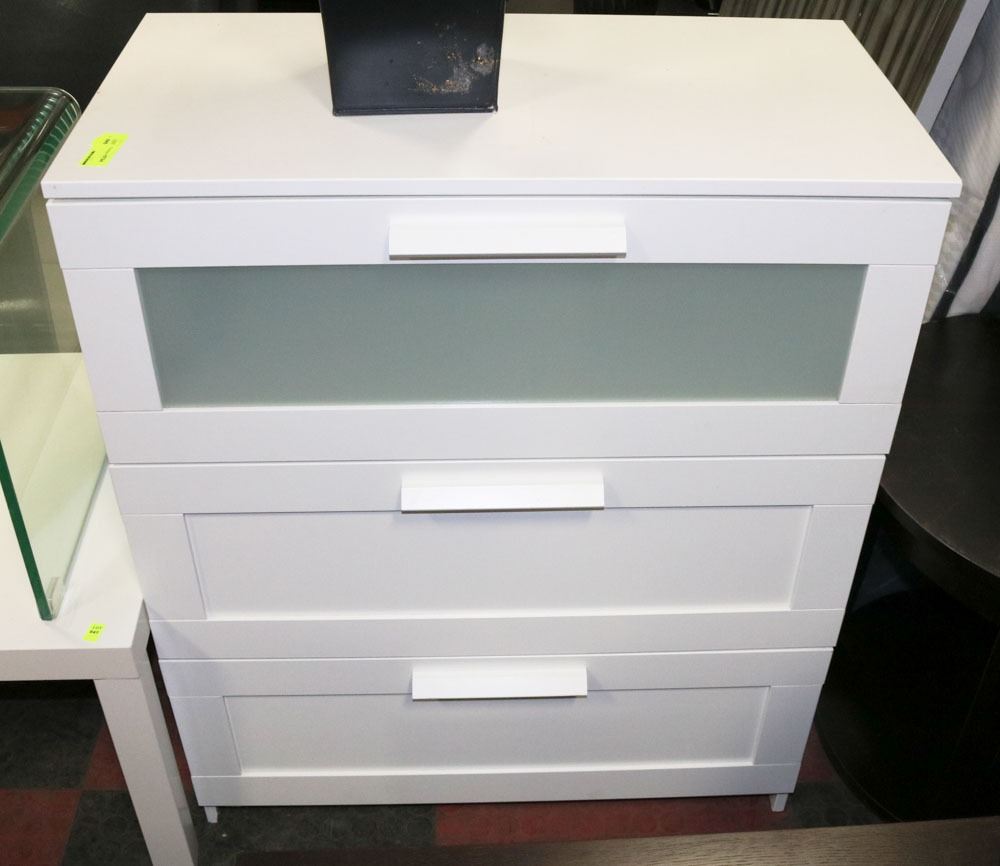 WHITE SHOWHOME 3 DRAWER DRESSER, 31.5"X16"X37.5"