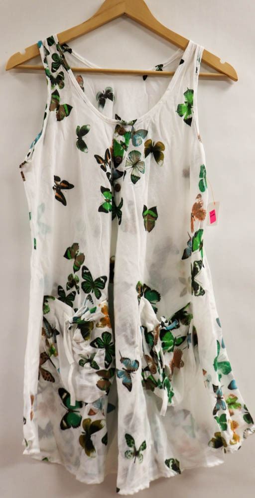 WHITE SLEEVELESS POCKETED DRESS WITH BUTTERFLY