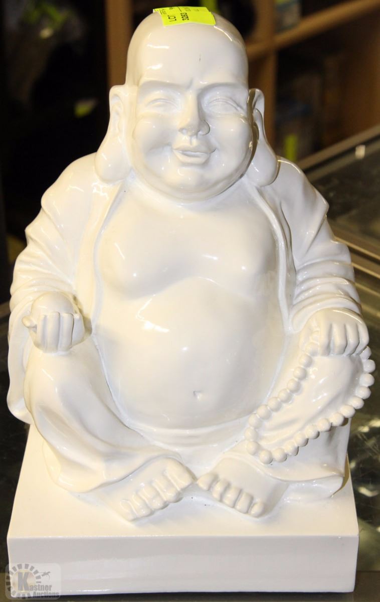 WHITE SMILING BUDDHA - 10 INCHES TALL