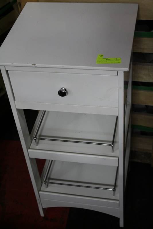 WHITE WOODEN PEDESTAL TABLE WITH 1 DRAWER
