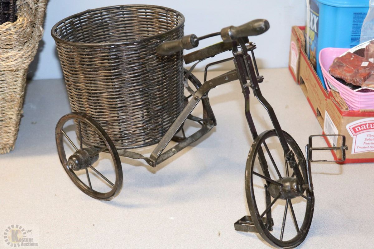 WICKER AND WIRE BICYCLE PLANTER 10"HIGH X16"WIDE