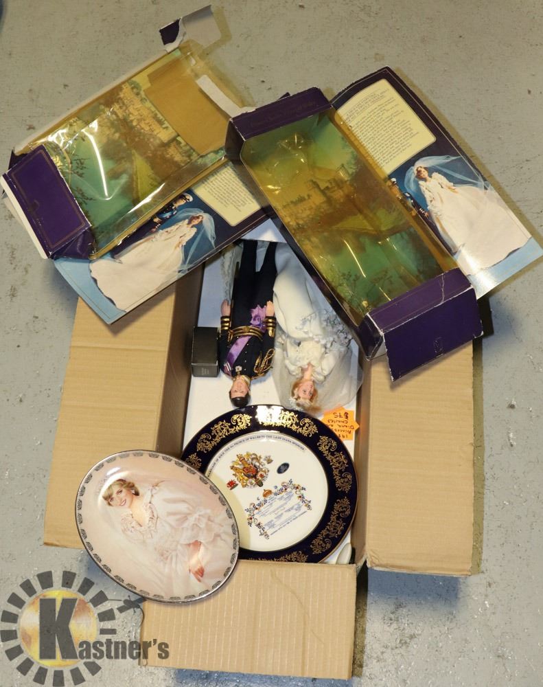 DIANA & CHARLES 9" WEDDING DOLLS, AYNSLEY COMMEMORATIVE PLATE, 2 AVON REPLICA ENGAGEMENT RINGS, "THE PEOPLE'S PRINCESS", FIRST ISSUE IN THE "DIANA - QUEEN OF OUR HEARTS" COLLECTION, BRADFORD EXCHANGE - COLLECTIBLE