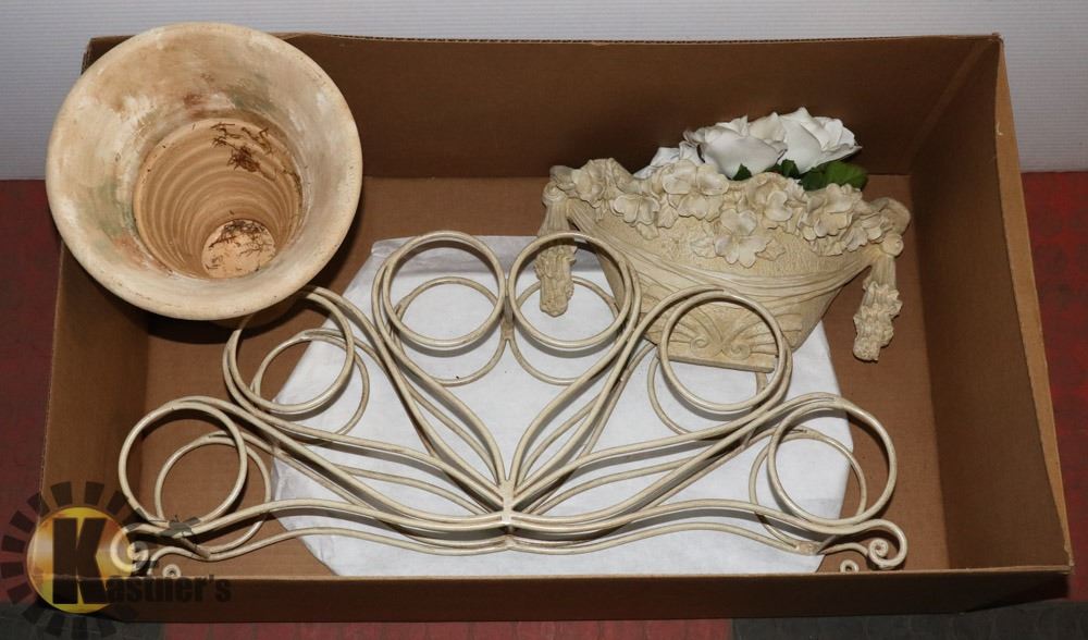 WINE RACK, RESIN VASE, SILK FLOWERS