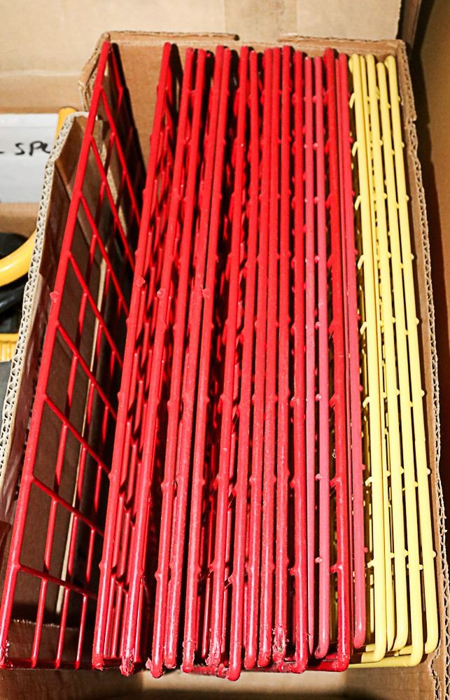 22 PANELS IN TOTAL, 14X14 IN SIZE. COMES WITH 20 PLASTIC CONNECTORS FOR CUBE SHELVING OR PET PLAYPEN.