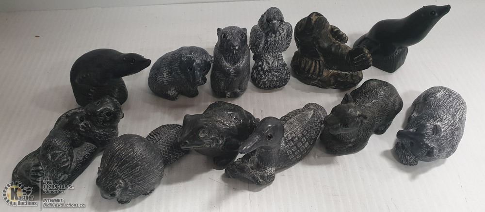 12 WOLF ORIGINAL SCULPTURES; VARIOUS ANIMALS. COLLECTIBLES.