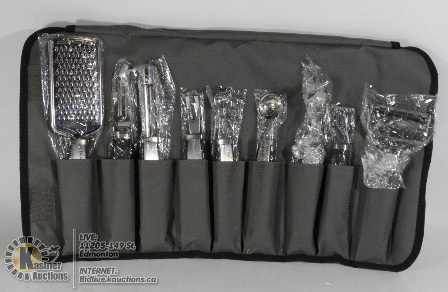 BRAND NEW. INCLUDES INSTRUCTION MANUAL AND RECIPE BOOK. JULIENNE PEELER, SWIVEL PEELER, SMALL AND MEDIUM MELON BALLERS, ZESTER, CHANNEL KNIFE, BUTTER CURLER, APPLE CORER AND A FINE GRATER