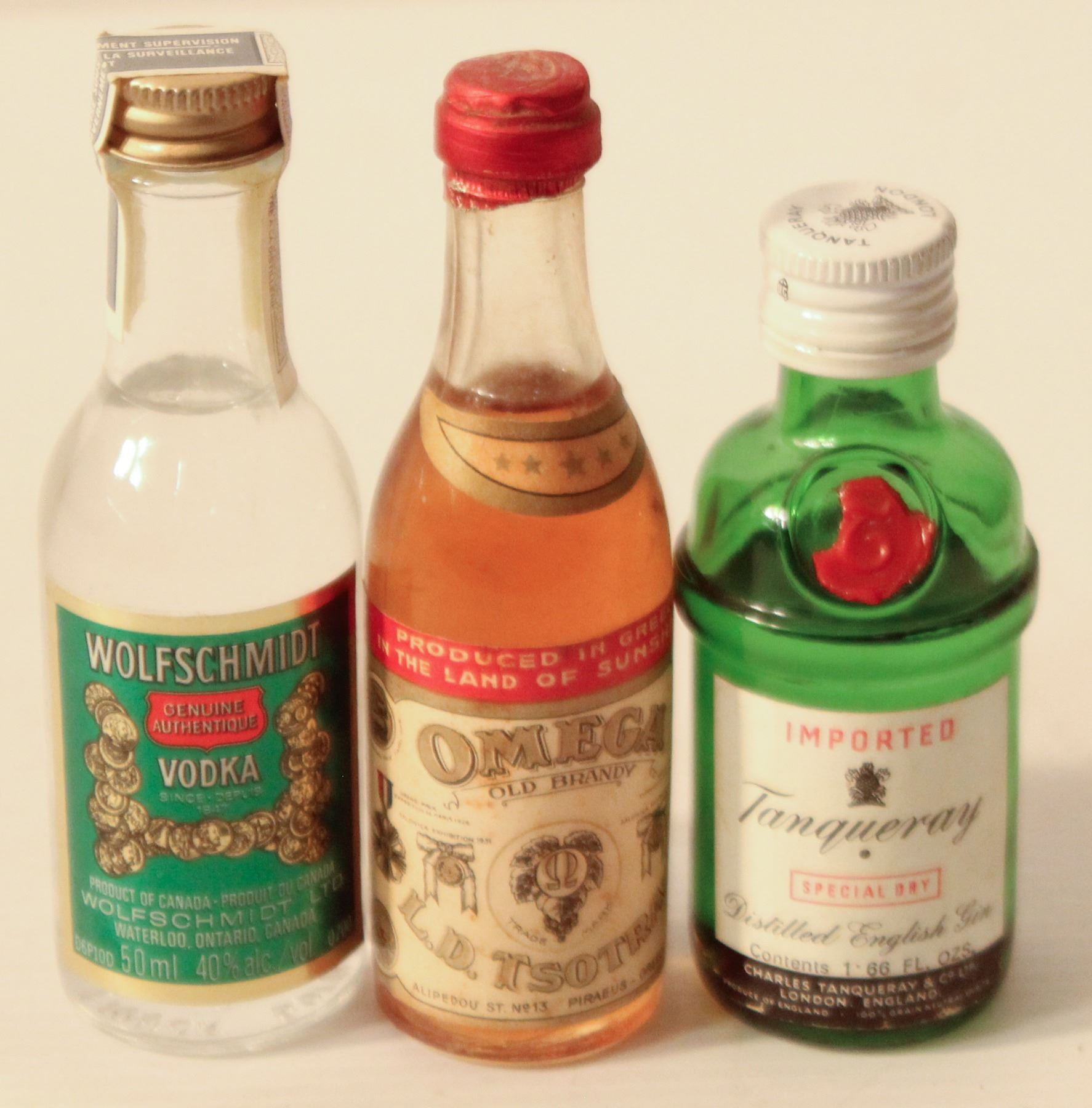 WOLFSCHMIDT VODKA, OMEGA BRANDY, TANQUERAY GIN