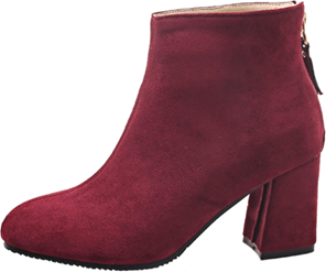 WOMEN BLOCK HEEL ANKLE BOOTS, SIMPLE OFFICE BOOTIES ROUND TOE ZIP HIGH HEEL BOOTIES SOLID (SIZE-10)