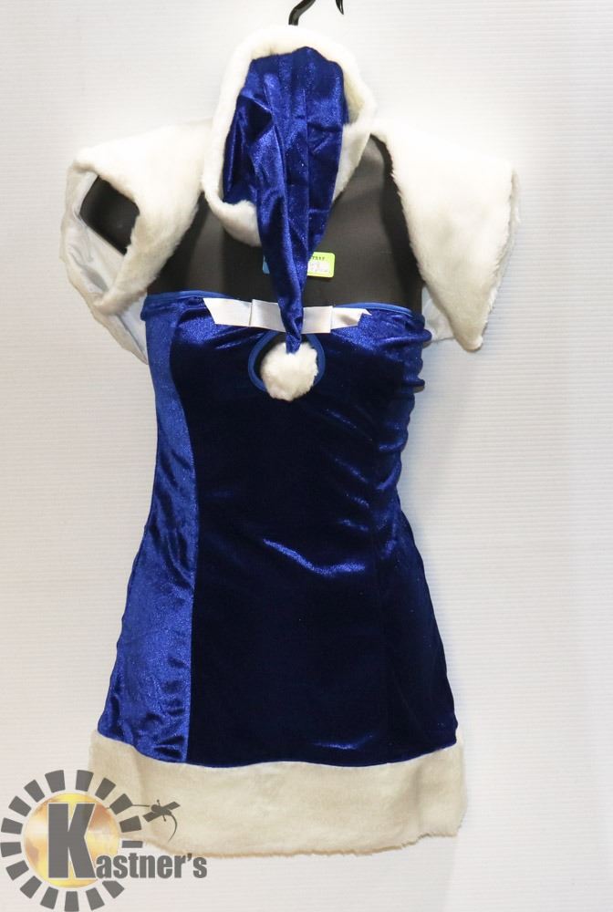 WOMENS ADULT ROYAL BLUE INTIMATE SANTA 3PC COSTUME