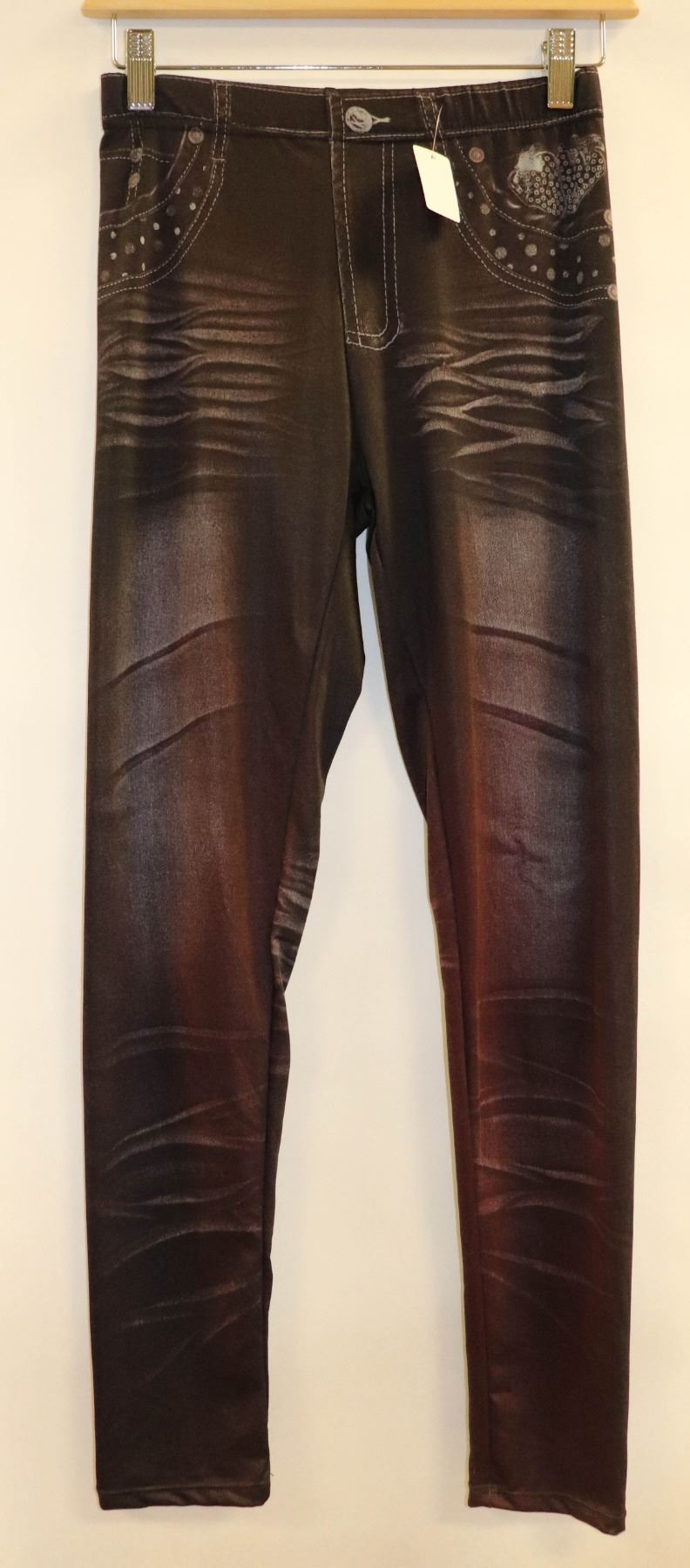 WOMENS FAUX DENIM BLACK LEGGINGS O/S FITS MOST