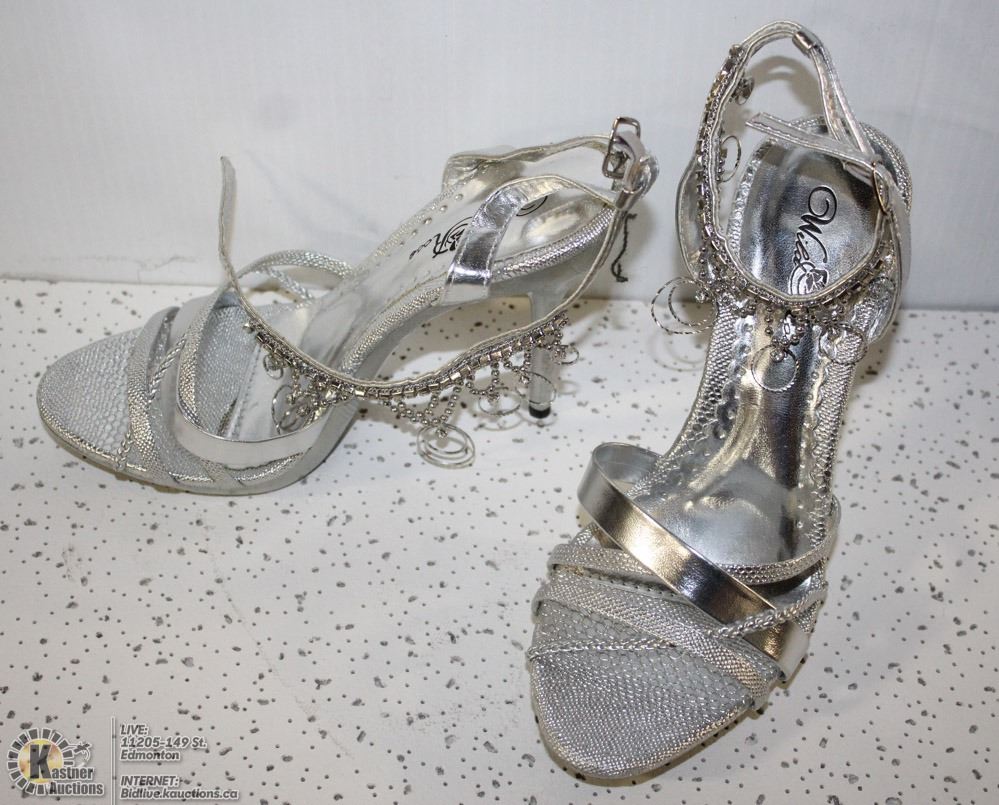 PAIR OF SILVER OPEN TOE STRAPPY HEELS SIZE 10