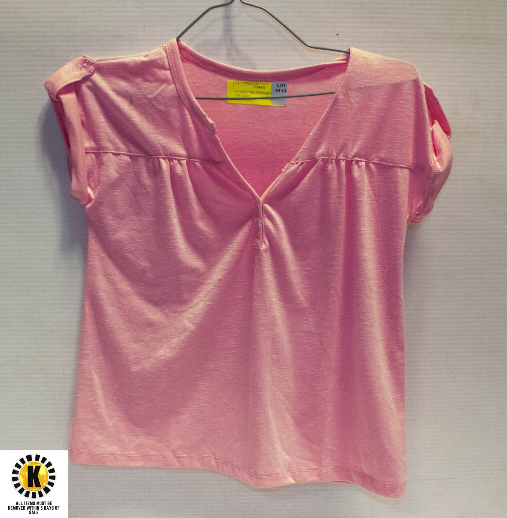 WOMENS PINK SUMMER V NECK TOP L NEW