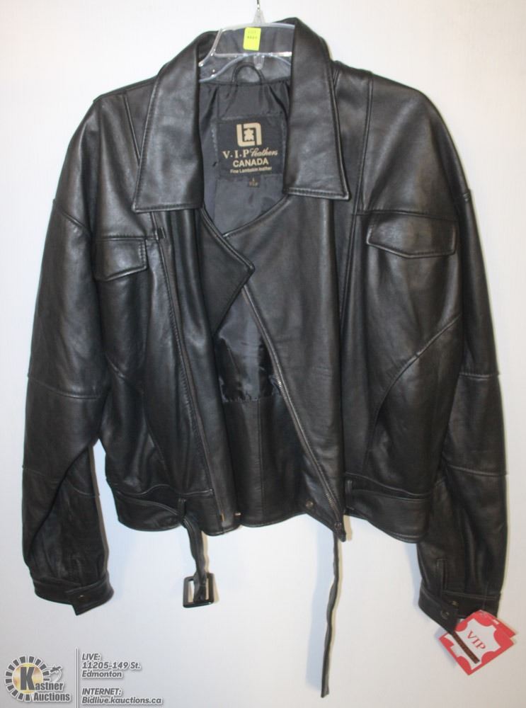 VIP LEATHERS BLACK LEATHER JACKET SIZE LARGE