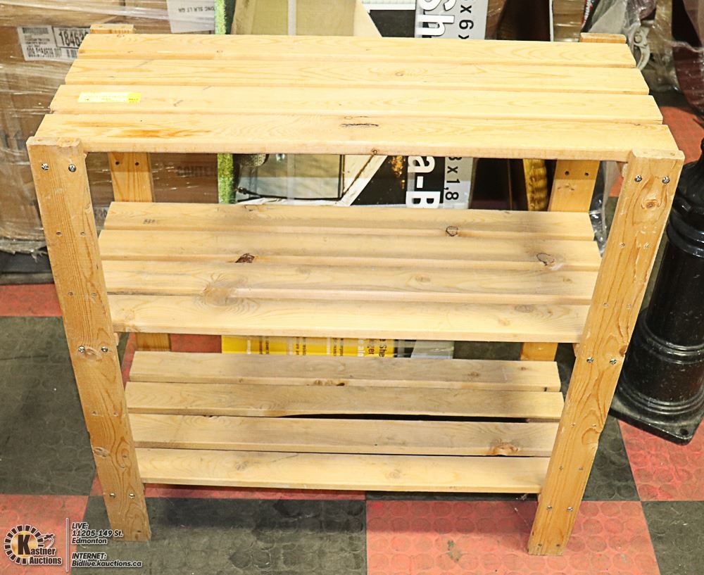 WOOD 3 TIER STORAGE SHELF W/DISPLAY, 30 X 30 X 14