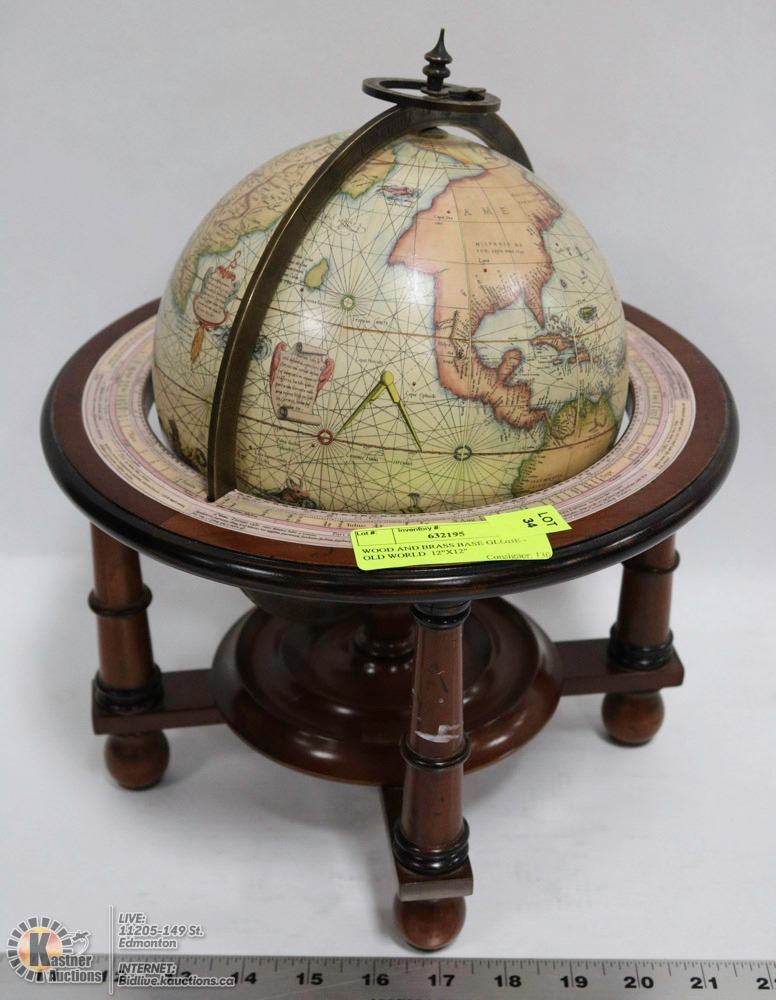 WOOD AND BRASS BASE GLOBE - OLD WORLD 12"X12"