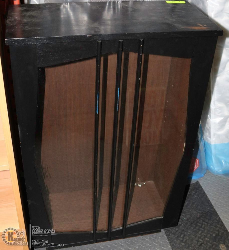 WOOD AND GLASS CABINET 12"X26"X40"H