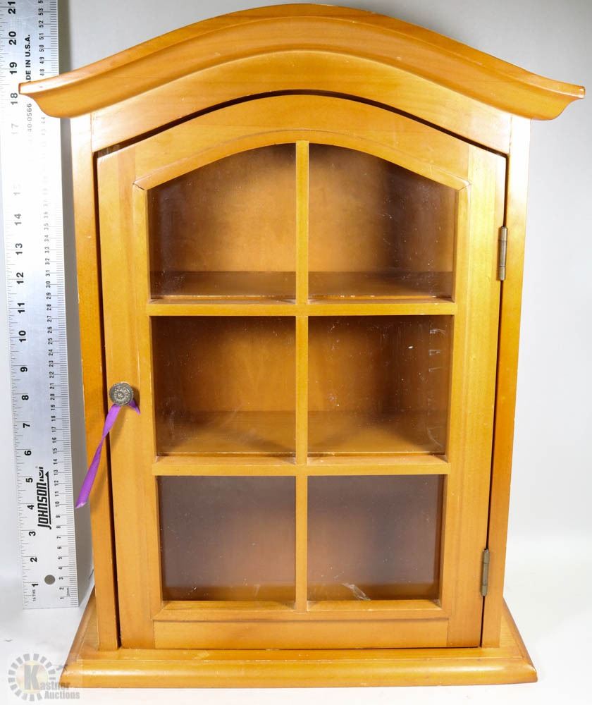 WOOD AND GLASS CURIO CABINET 13"X20"H