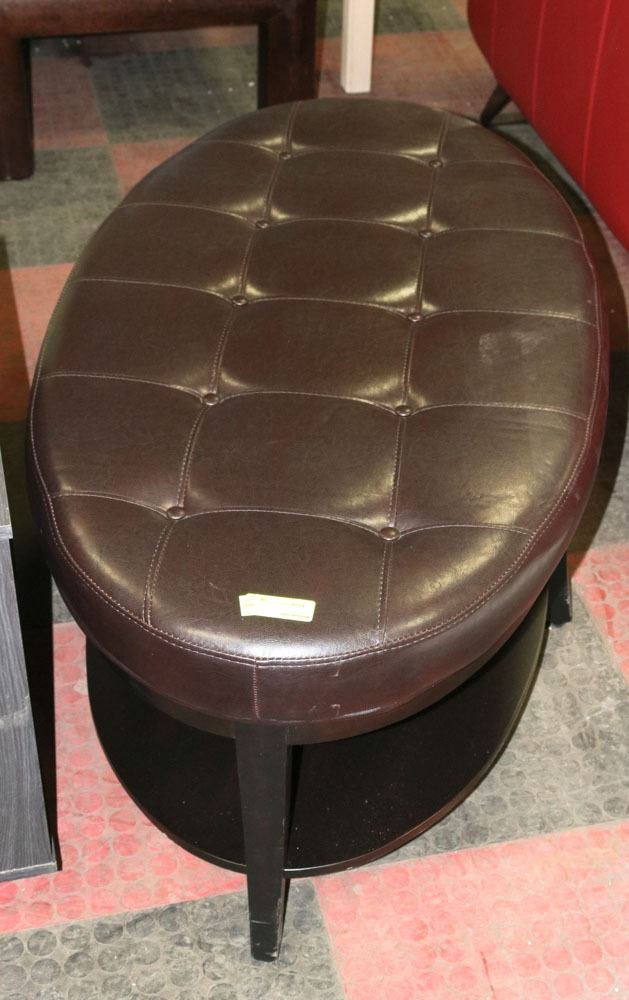 WOOD AND LEATHERETTE OVAL SHAPE BENCH, 47"X26"