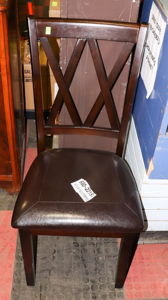 WOOD AND LEATHERETTE SIDECHAIR. FURNITURE