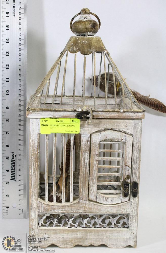 WOOD AND METAL DECORATIVE BIRD CAGE