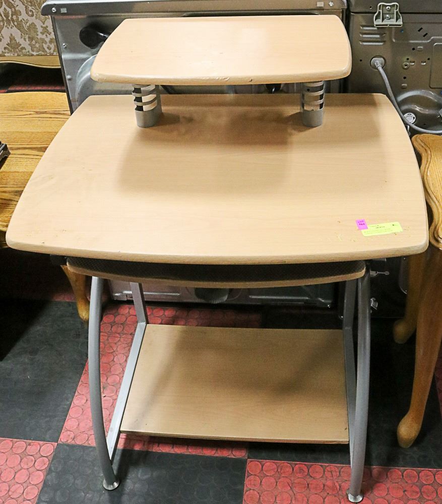 WITH ROLLOUT KEYBOARD TRAY AND RAISED MONITOR PEDESTAL (SOME MARKS) - 29"L X 21"W X 38"H