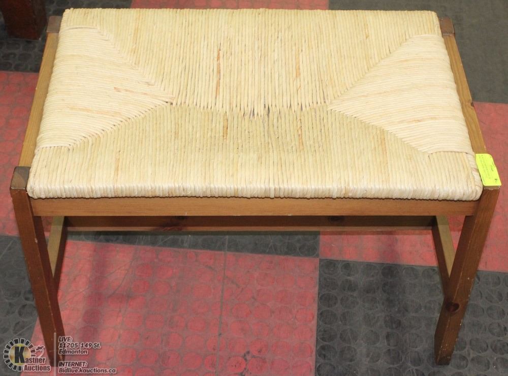 WOOD AND WICKER STOOL 26" LENGTHX16"WIDE AND 17"H