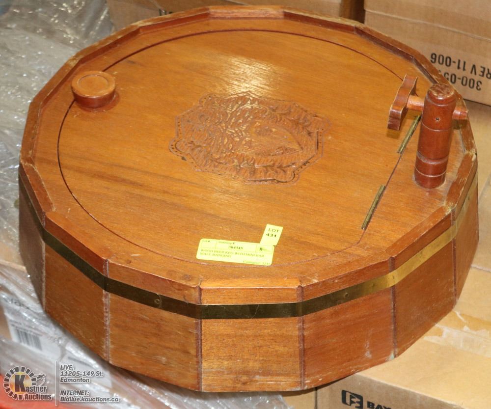 WOOD BEER KEG WITH MINI BAR WALL HANGING
