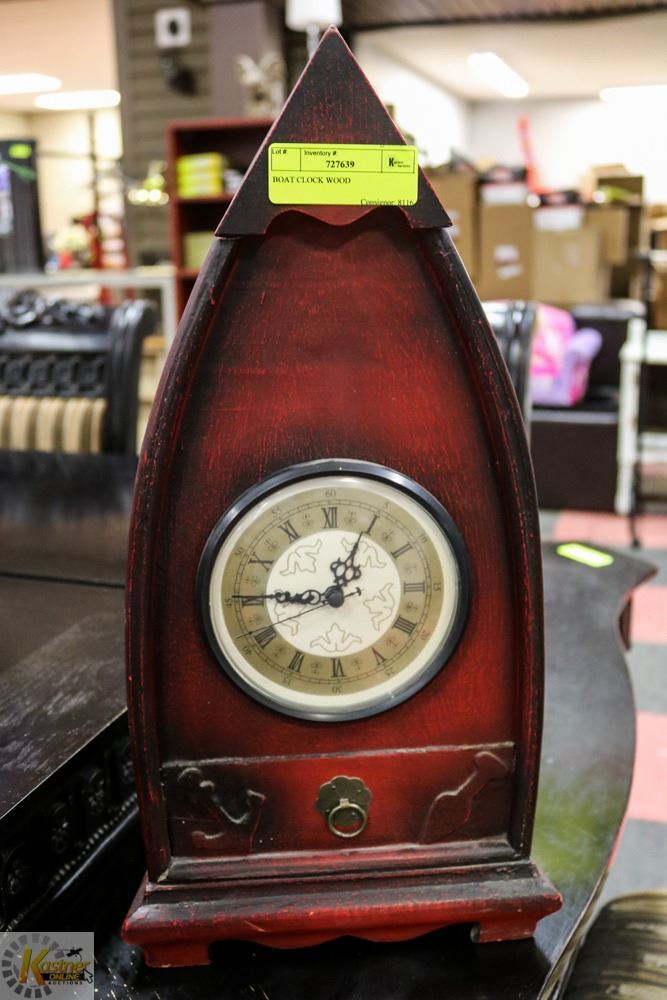 WOOD BOAT CLOCK APPROX 18 INCHES TALL