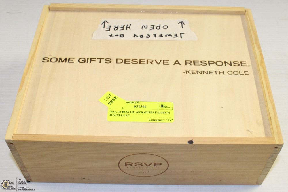 WOOD BOX OF ASSORTED FASHION JEWELRY