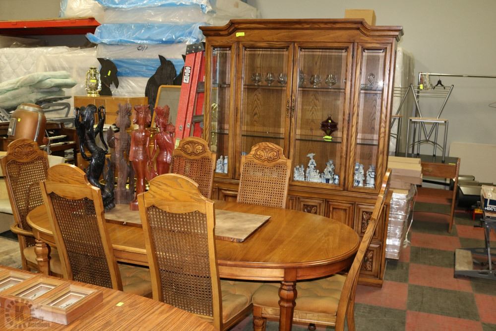 AND TABLE WITH 2 LEAFS. 40"X76"X29"H (TABLE), 64"X19"X79"H (HUTCH) ***MUST BE REMOVED BY MONDAY 6 PM***