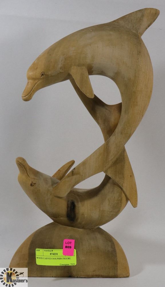 WOOD CARVED DOLPHIN FIGURE.