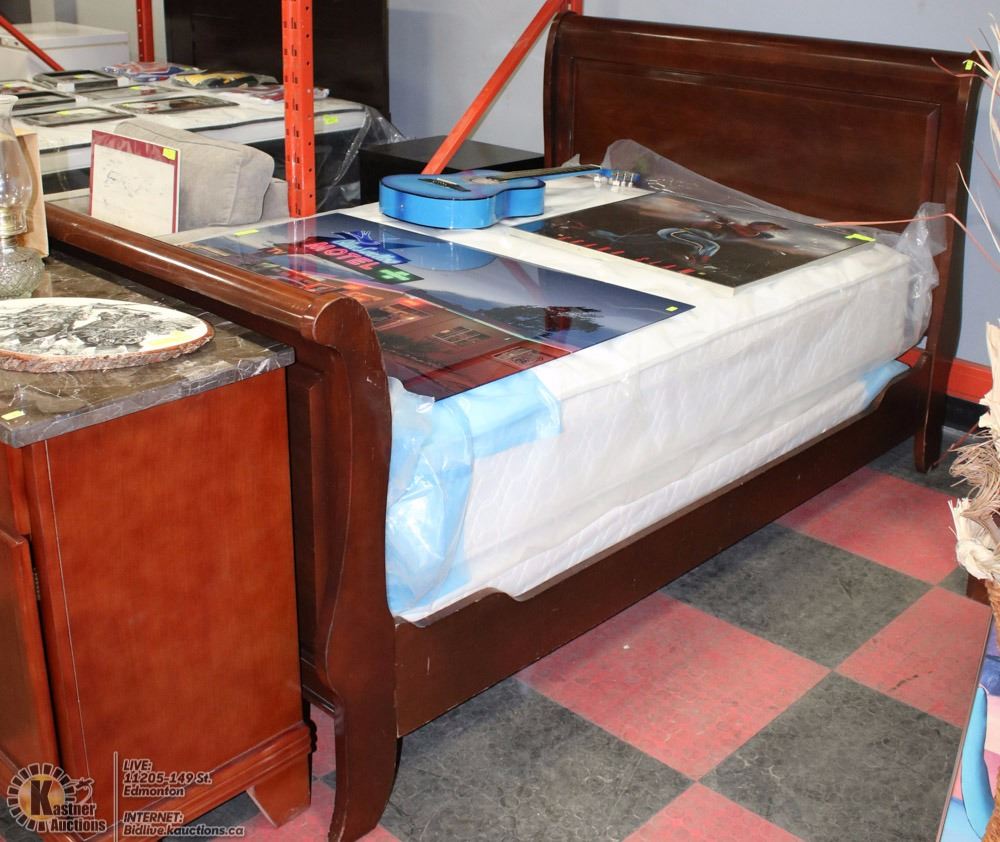 WOOD DOUBLE SIZE SLEIGH BED -MATTRESS NOT INCL