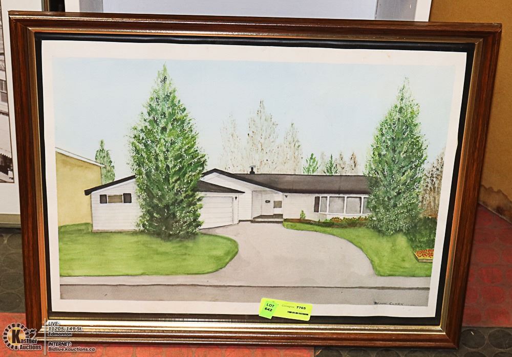 WOOD FRAMED HOUSE PICTURE BY FRANK CLARK