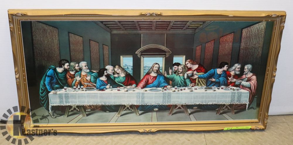 WOOD FRAMED "LAST SUPPER" DEPICTION WALL HANGING