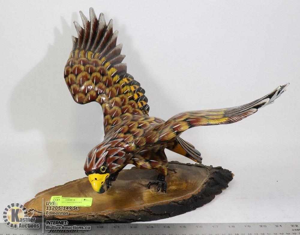 SMALL CRACK IN WING AND TAIL WING SPAN 17" BEAK TO TAIL 13" WOODEN BASE 16"-COLLECTIBLES