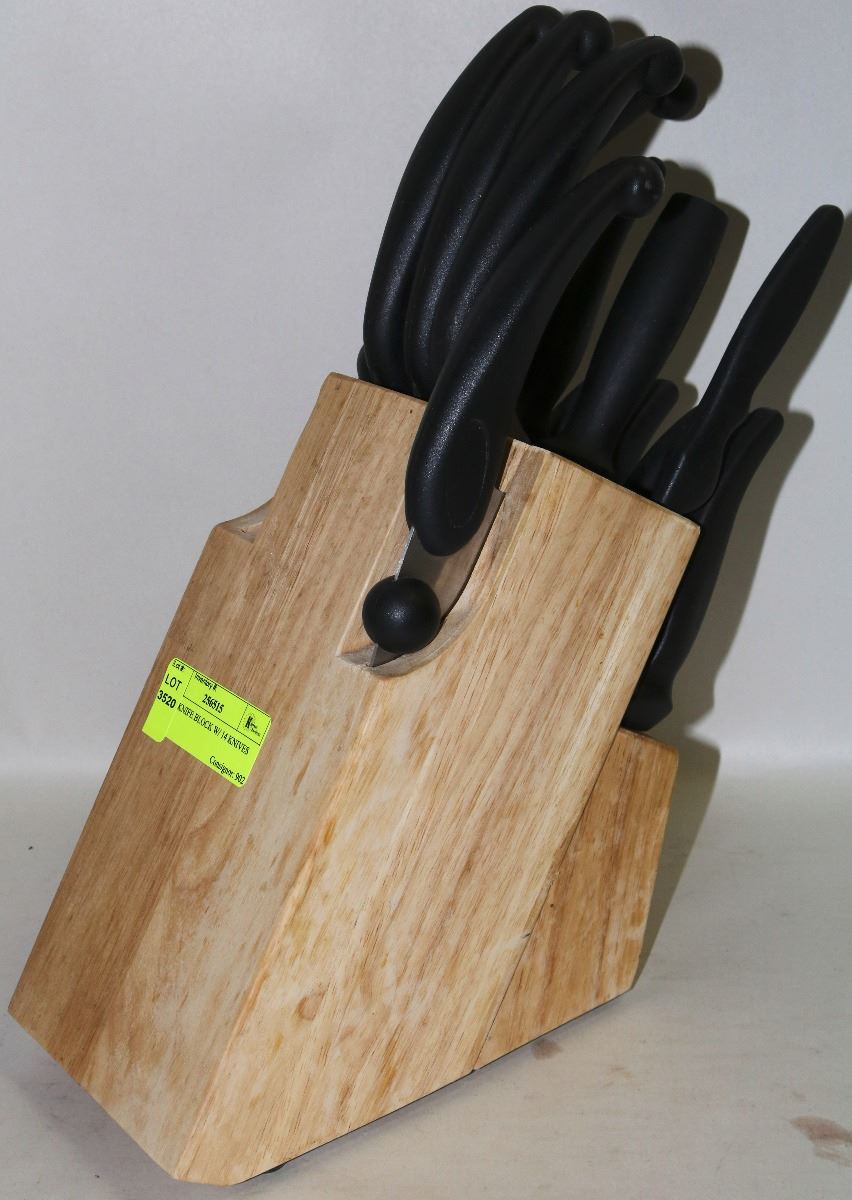 WOOD KNIFE BLOCK W/ 14 KNIVES