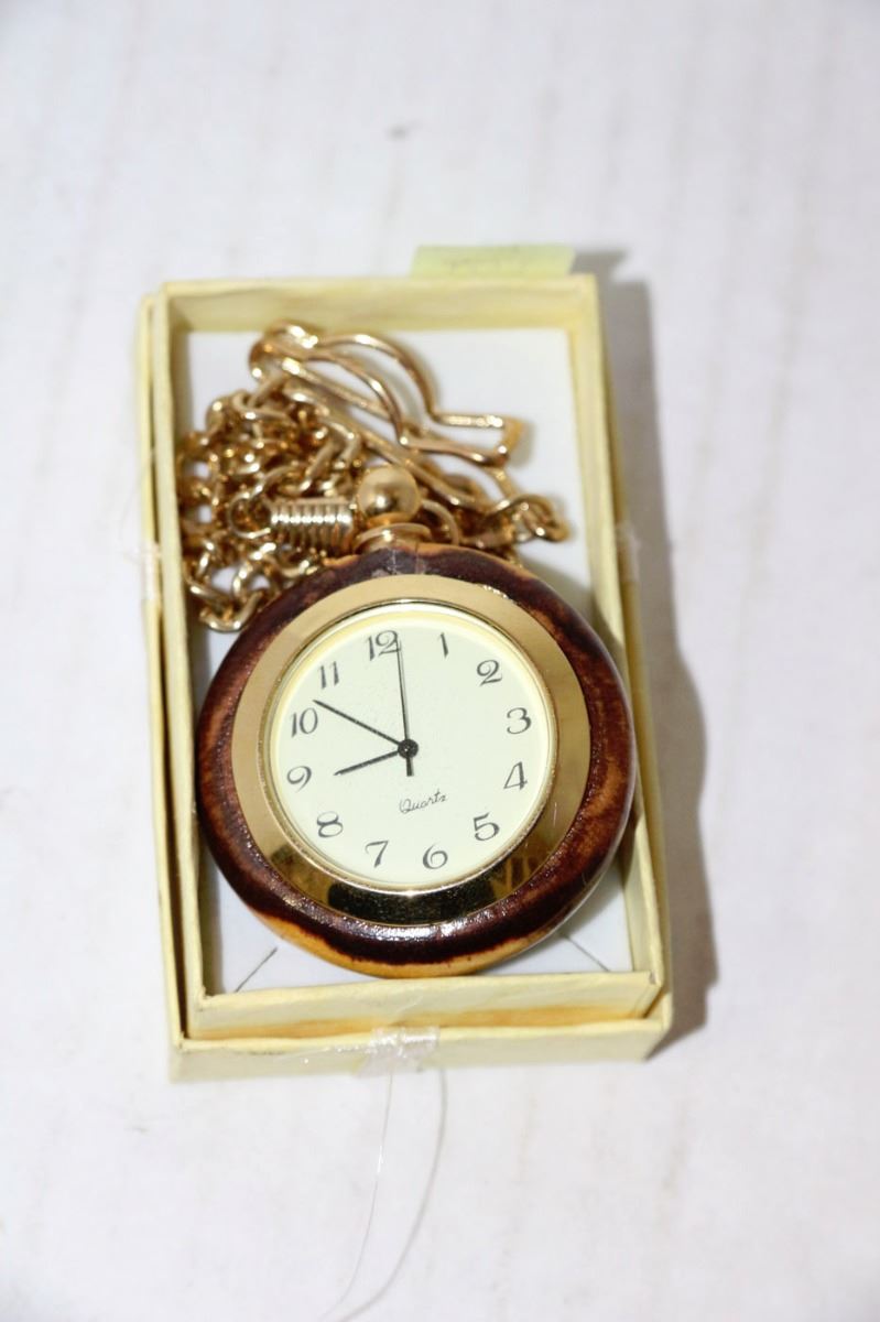 WOOD QUARTZ POCKET WATCH