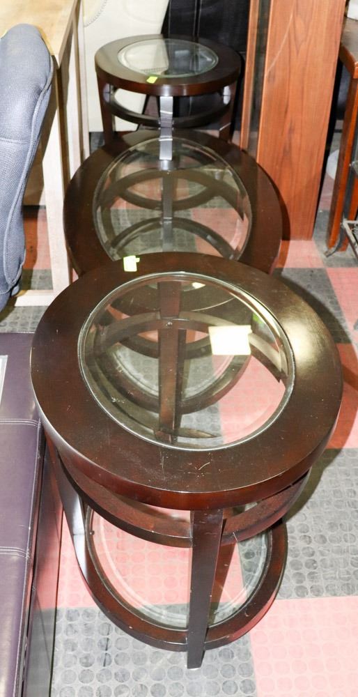END TABLES: 23"X29"X24.5", COFFEE TABLE: 48"X26"X18". FURNITURE