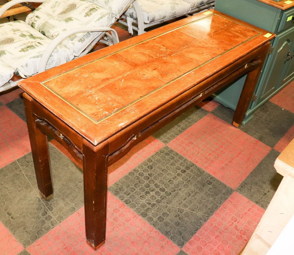 WOOD TONE SOFA TABLE. FURNITURE 52.5X17.5X26"H
