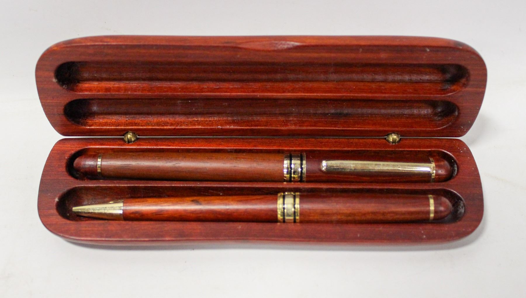 WOOD TURNED FOUNTAIN PEN SET WITH CASE